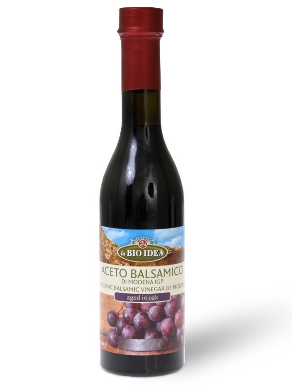 OSNOVNI PODATKI: Ekološko pridelan balzamični kis La BIO IDEA iz Modene je plod znanja in tradicije družine Lorenzi. Svež ekološki mošt kuhajo 24 ur dokler ne izpari na tretjino svojega prvotnega volumna. Nato dodajo ekološko vino v takšnem razmerju, da končni izdelek doseže kislinsko stopnjo 6%. Nato ekološki kis starajo v lesenih sodih najmanj 5 let. Na takšen način dobijo enkraten aromatičen balzamičen kis.