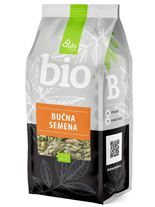 OSNOVNI PODATKI: Buča (Cucurbita pepo) je v Evropo prišla iz Mehike in je sorodnica kumar in melon. Rastlina ljubi toploto in vodo, ter hranljiva globoka tla. Jeseni iz buč poberemo bučna semena, ki jih očistimo in posušimo. BIO Bučnice BUFO ORGANIC niso le slasten prigrizek, temveč njihovo redno uživanje prinaša tudi veliko hranljivih snovi, ki so potrebne našemu organizmu. Bučnice imajo visoko vsebnost beljakovin in nenasičenih maščobnih kislin.