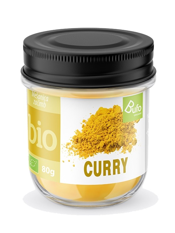 OSNOVNI PODATKI: Curry v prahu BUFO ORGANIC iz kontrolirane ekološke pridelave. Curry ni samostojna začimba, ampak gre za mešanico različnih začimb, ki skupaj tvorijo okus, med najpomembnejšimi sestavinami pa je kurkuma. Glede na sestavine poznamo vse od sladkih do bolj pikantnih mešanic curryja. Gre za indijsko začimbo, sladko-ostrega okusa in temno rumene barve.