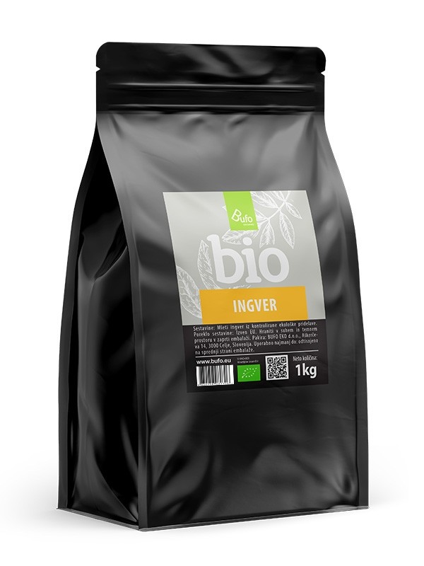 Bio ingver v prahu BUFO ORGANIC (lat. Zingiber officinale) je začimba, ki se v kitajski medicini uporablja že več kot 2000 let. Ingver se uporablja kot dodatek k različnim sladicam, mesnim, vegeterijanskim in morskim jedem.  Uporabljamo pa ga tudi pri pripravi različnih napitkov.