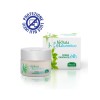 OPIS IZDELKA: Izredne lastnosti hialuronske kisline s trojnim delovanjem na koži tvorijo neviden film, ki preprečuje dehidracijo kože, kolagen in elastin pa ohranjata njeno elastičnost in preprečujeta nastajanje gub. Bogata formula glikozaminglikanov v kombinaciji z sluzjo iz listov baobaba in naravno mešanico medu, krepi celično strukturo kože. Poleg tega pa sestavine, ki jih vsebuje olje grozdnih pečk, karitejevo maslo in vitamin E kožo ščitijo pred procesi staranja.