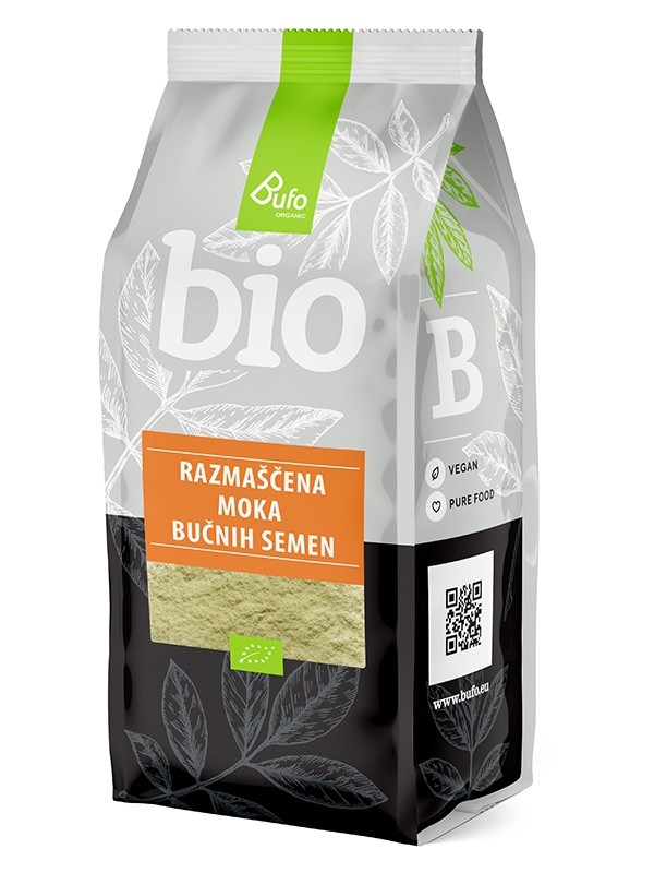 OSNOVNI PODATKI: BIO moka iz bučnih semen BUFO ORGANIC je narejena s hladnim stiskanjem (za pridelavo bučnega olja) in mletjem bučnih semen (oziroma pogače). Pri tem se ohranjajo naravne hranilne vrednosti bučnih semen, zato je moka iz bučnih semen dobrodošlo živilo v vsaki kuhinji.