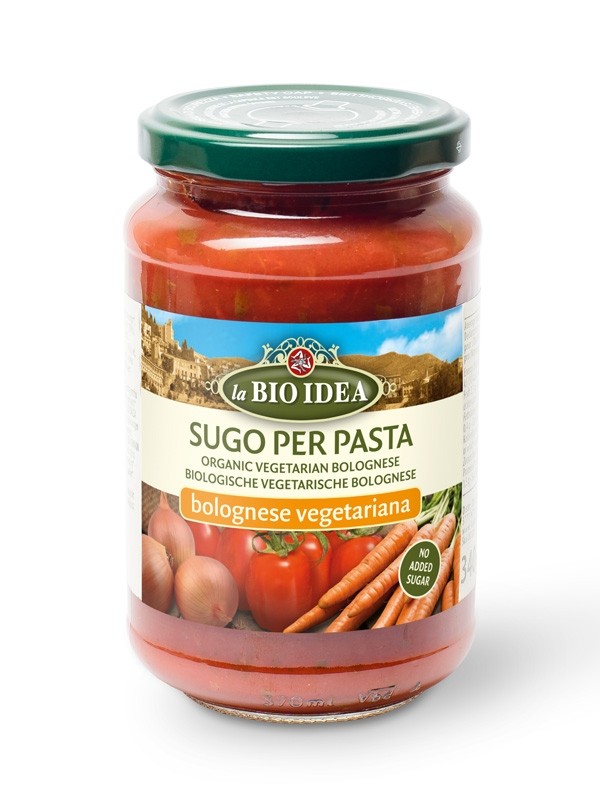 OSNOVNI PODATKI: Vegetarijanska bolognese omaka za testenine La BIO IDEA je odlična, brezmesna alternativa klasični bolognese omaki. Izdelana je iz sestavin izključno iz kontrolirane ekološke pridelave, po tradicionalni recepturi. Meso je nadomeščeno s sojinim mesom oziroma sojinimi koščki, tako da je omaka primerna tudi za vegetarijansko prehrano. Glavna sestavina omake je bio paradižnik, pridelan na sonaraven in ekološki način. Vsi izdelki iz paradižnika LA BIO IDEA so proizvedeni iz bio paradižnika, ki je popolnoma dozorel, zato so izjemno okusni. Paradižniki prihajajo iz Sicilije, kjer jim izredno hranljiva vulkanska prst in obilica sonca omogočata prvovrstno kvaliteto. Kmetijske površine niso prekomerno gnojene zato je okus paradižnika bistveno boljši kot pri konvencionalni pridelavi. Za paradižnik je namreč značilno, da pri prekomernem gnojenju z dušičnimi gnojili izgublja na okusu.