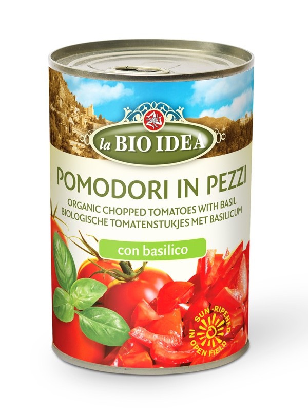 OSNOVNI PODATKI: Paradižnik v koščkih z baziliko iz ekološke pridelave LA BIO IDEA, je pripravljen iz najboljših sicilijanskih paradižnikov, ki morajo pred predelavo skozi strog postopek izbire. Paradižniki so gojeni na Siciliji, kjer jim izredno hranljiva vulkanska prst in obilica sonca omogočata prvovrstno kvaliteto. Kmetijske površine niso prekomerno gnojene, zato je okus paradižnika bistveno boljši kot pri konvencionalni pridelavi. Za paradižnik je namreč značilno, da pri prekomernem gnojenju z dušičnimi gnojili izgublja na okusu. Paradižnik, pridelan na naraven, ekološki način, je v vsakdanji prehrani še kako pomemben.