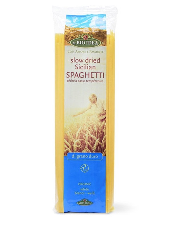 OSNOVNI PODATKI: Beli špageti pšeničega durum zdroba iz kontrolirane ekološke pridelave LA BIO IDEA so narejeni po klasičnem postopku sušenja pri nizkih teperaturah. Iz sveže mlete moke brez jajc in ostalih dodatkov.